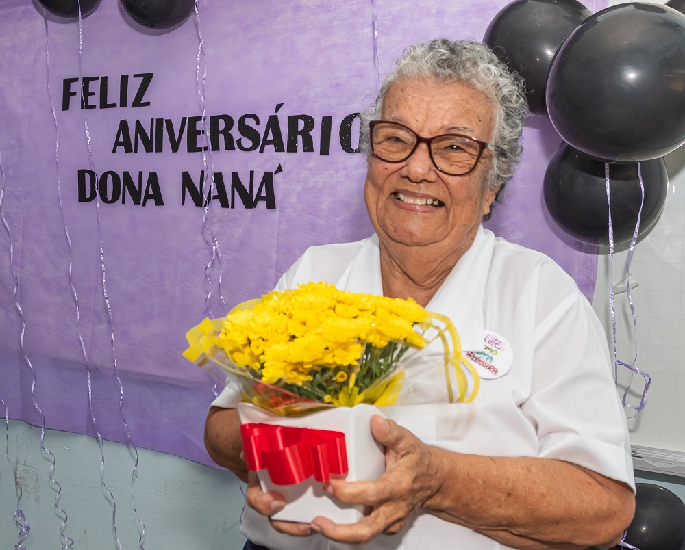 Ignácia de Carvalho do Carmo completou 86 anos de idade nesta terça-feira (1). Para quem não associou o nome à pessoa, ela é a Dona Naná – como amigos e familiares a chamam carinhosamente –, a aluna mais velha dentre os quase 700 mil estudantes da rede estadual de ensino do Rio de Janeiro. E como a data não poderia passar em branco, colegas da 2ª série do curso de Formação de Professores, no Colégio Estadual Clodomiro Vasconcelos, em Itaguaí, fizeram uma festa surpresa, com direito a bolo, guaraná, balões, flores e até cartão de aniversário.