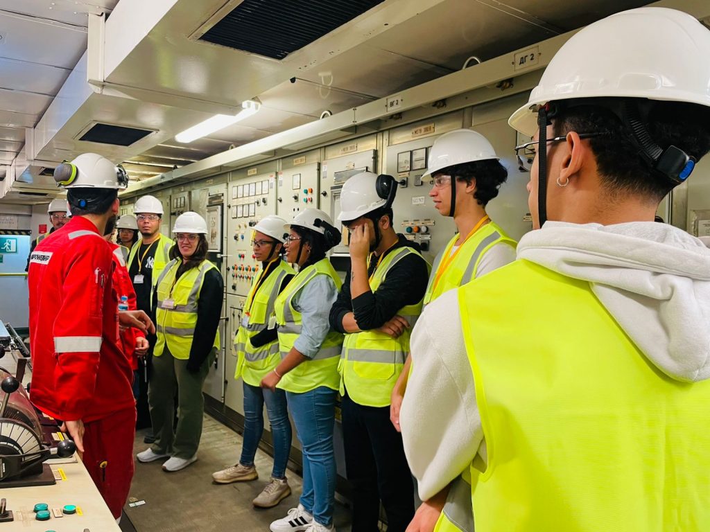 O objetivo da visita foi proporcionar uma aula prática em ambiente real de operação, permitindo que os futuros engenheiros conhecessem de perto áreas estratégicas da embarcação, como o passadiço, a sala de controle dos motores, os motores principais e os geradores. A experiência foi elogiada pelo professor e estudantes, que destacaram a relevância da imersão para consolidar o conhecimento adquirido em sala de aula.
