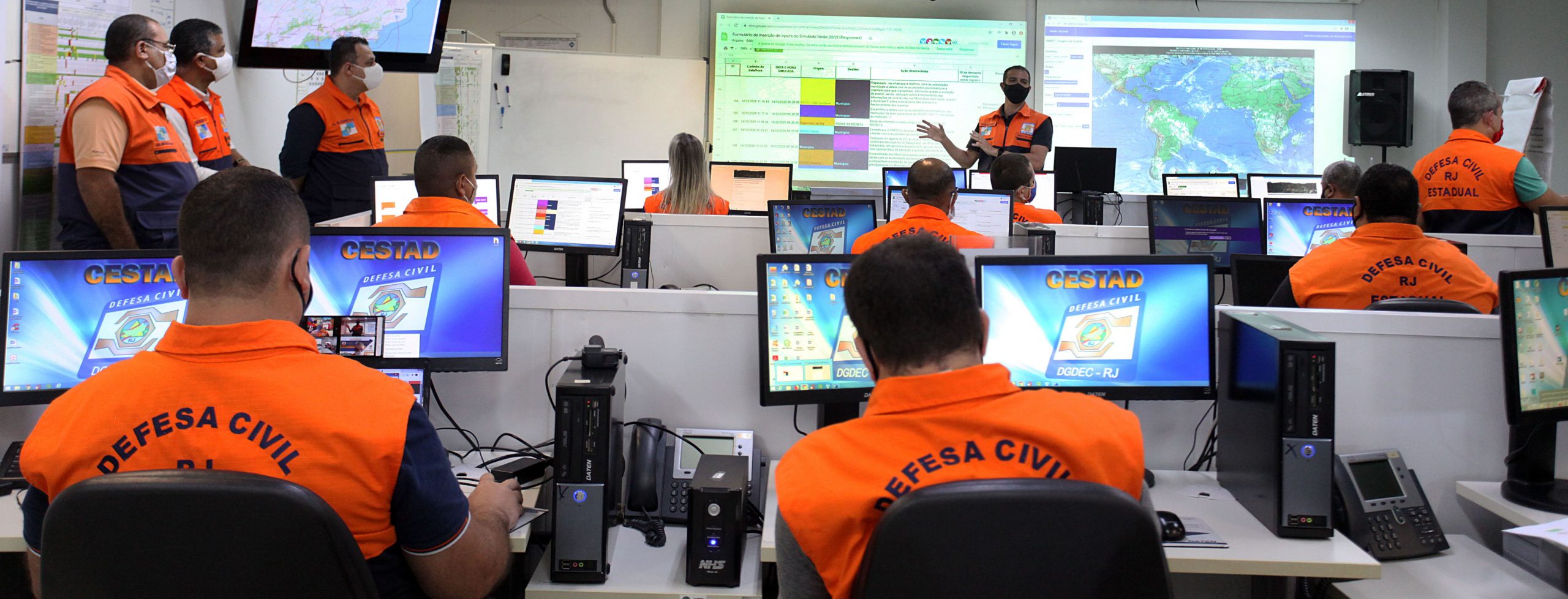 PREVENÇÃO CLIMÁTICA O Governo do Estado do Rio de Janeiro lançou, na terça-feira (15), o Plano de Contingência para as Chuvas de Verão 2020/2021 (PCCV2020/2021), documento que traça protocolos para resposta rápida e integrada a emergências causadas por chuvas intensas no território fluminense. A apresentação foi realizada no Palácio Guanabara, após a realização de exercício simulado, a cargo da Secretaria Estadual de Defesa Civil (Sedec-RJ), que capacitou agentes para uma resposta eficaz.
