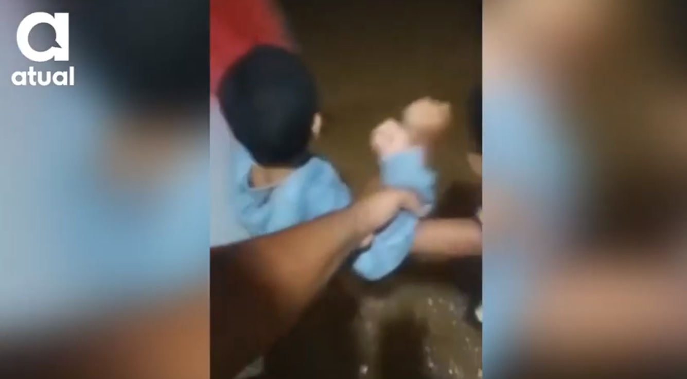 Vídeo: em Itaguaí, mãe desesperada tenta colocar crianças em segurança durante enchente