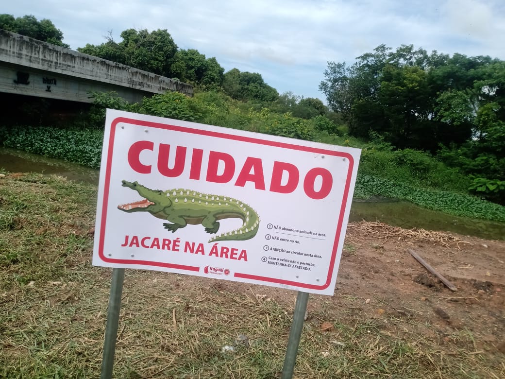 Prefeitura de Itaguaí instala placas para alertar sobre a presença jacarés na área da Expo, mas nada de cerca