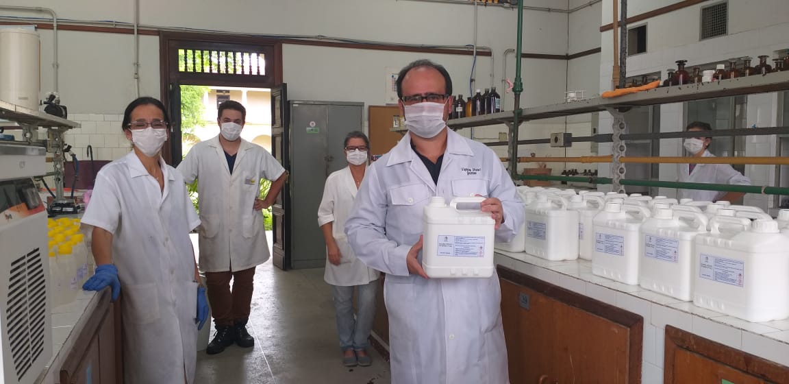 Servidores da UFRRJ produzem álcool 70º e máscaras para distribuição gratuita